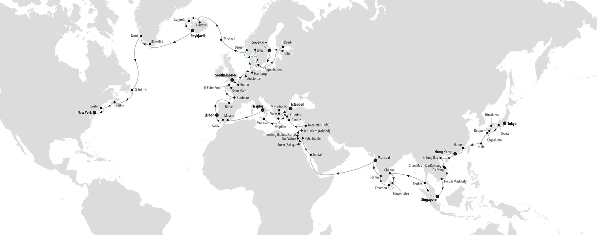 Controtempo - World Cruise 2025: da Tokyo a New York 13 gennaio - 28 maggio 2025 (136 giorni) sulla Silver Dawn, 59 porti, 10 rotte e 30 nazioni